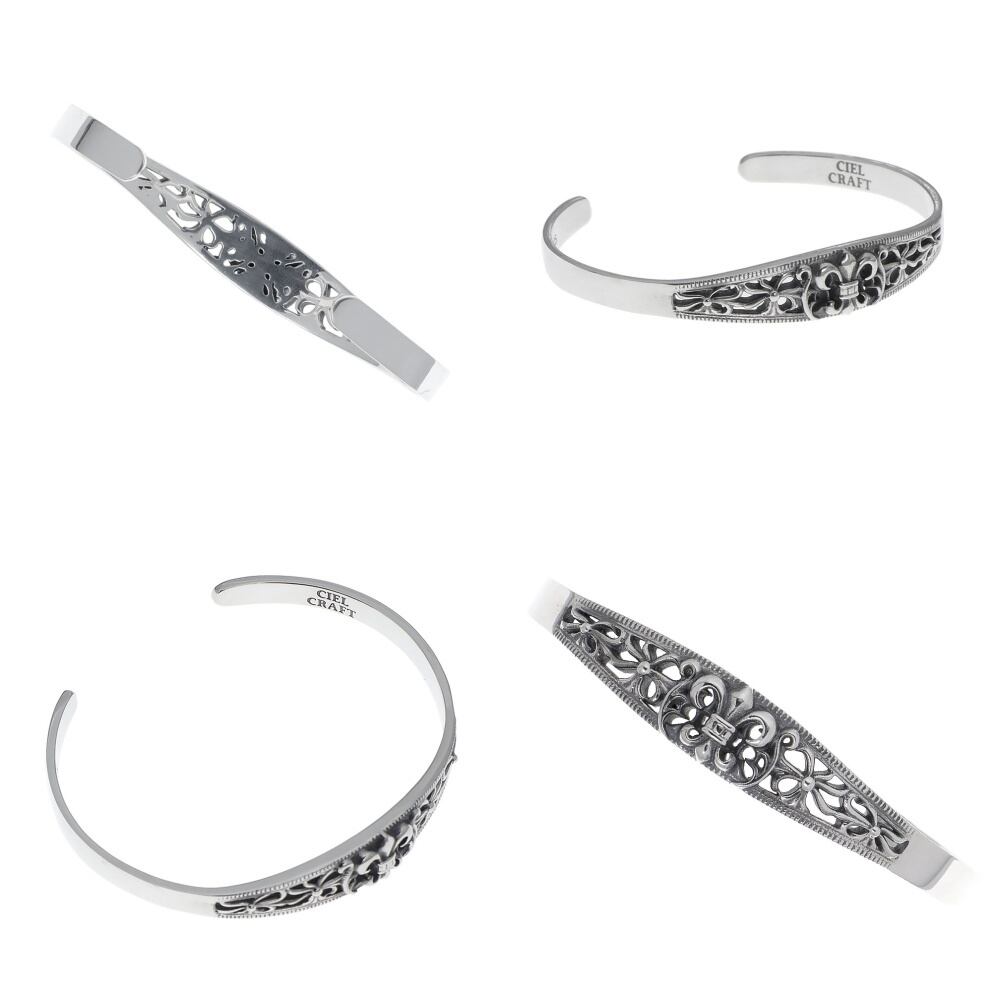 スターリングシルバーに燻し加工を施すことで、クラシカルかつ立体的な陰影が浮かび上がり、装いに格別の存在感を与えます。