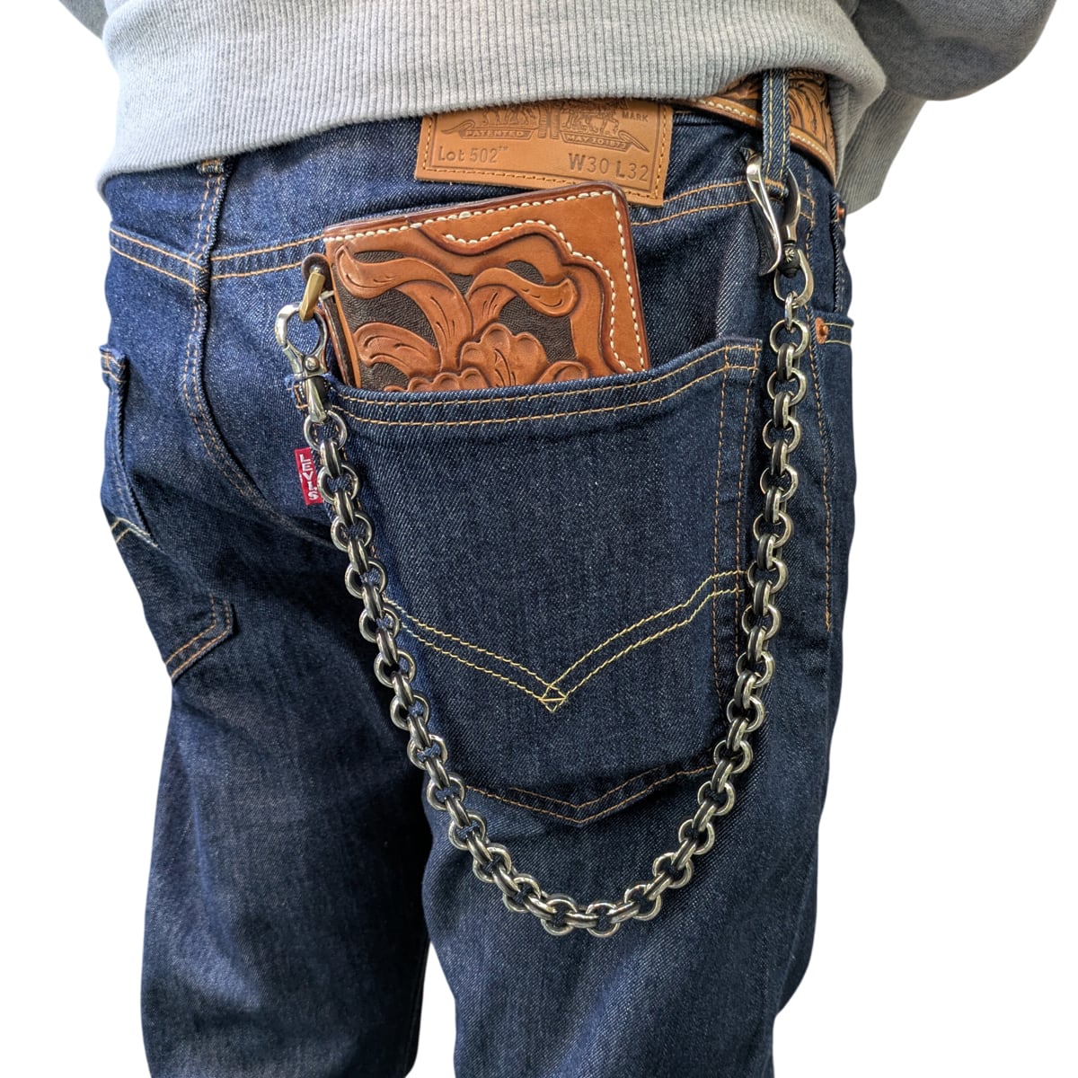 ジャーマンシルバー ウォレットチェーン 自社オリジナル 最高級 燻し加工 白銅 Double Ring
