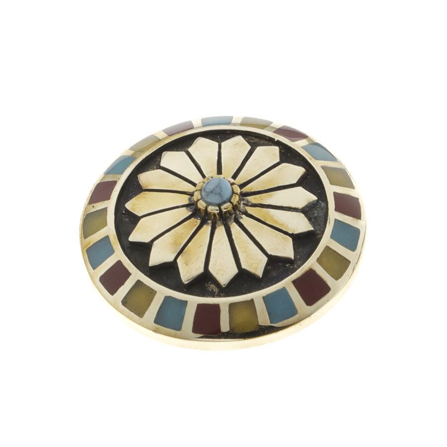 コンチョの形に合わせ天然石(ターコイズ石)を一粒一粒お付けした製品になります。 天然の素材ですので、一粒一粒表情が違います。 素材の個性に合わせ、無理に加工せず、形に合わせた状態でお付けしておりますので 一点一点多少形にバラツキがございますが、それぞれの個性をお楽しみいただければと思います。