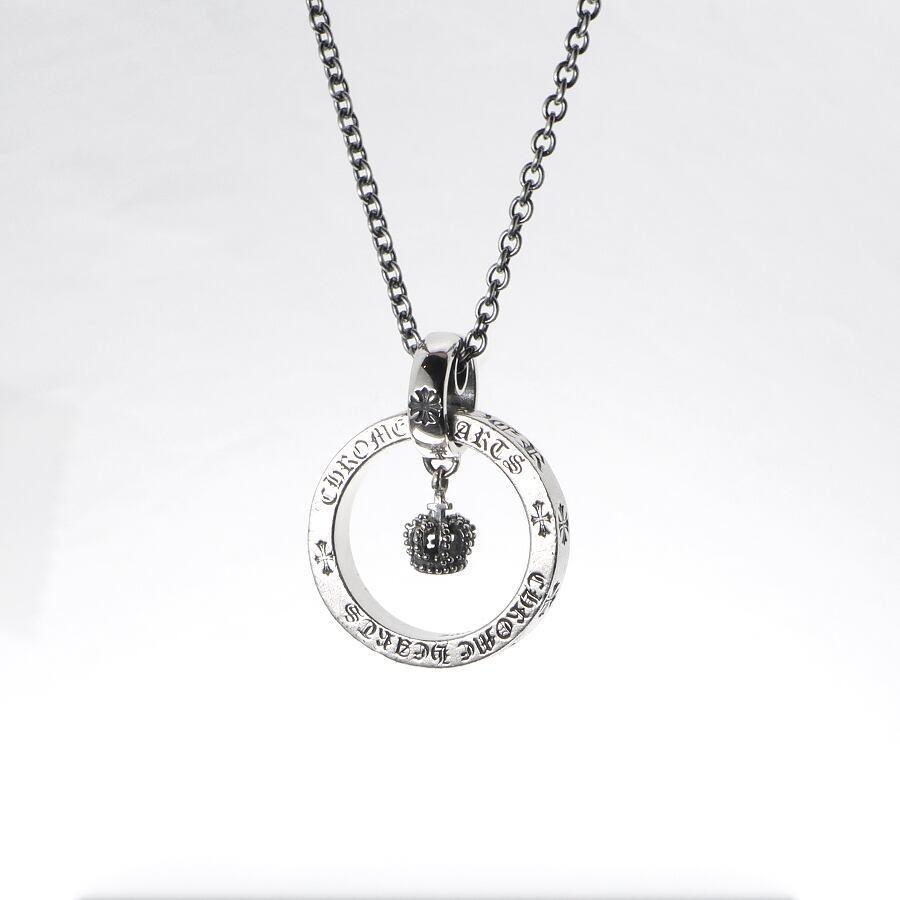 ネックレス シルバー925 王冠 クラウン シンプル リングホルダー リング 指輪をネックレスにする 横向き防止 燻し加工 スペーサーリング対応可能